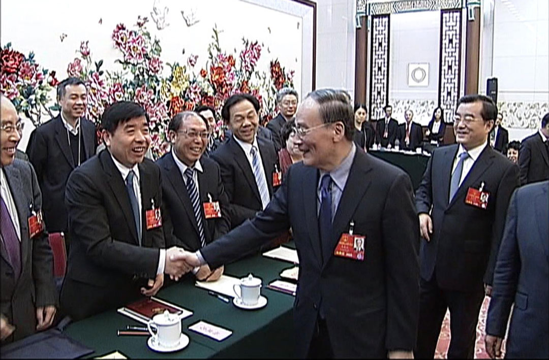 時任中央政治局常委、中央紀(jì)委書記王岐山與楊建忠董事長親切握手